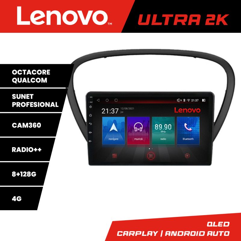 Navigatie Peugeot 607 Octacore, 8 Gb RAM, 128 Gb Hdd, 4G, Qled 2K, DSP, Carplay AA, 360, Bluetooth