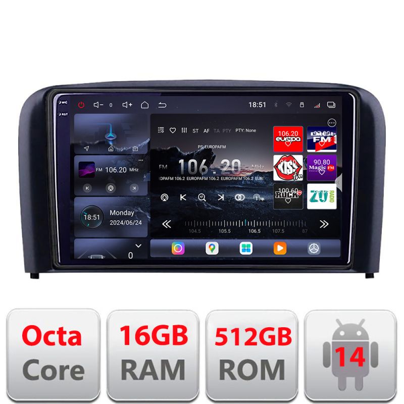 Navigatie Volvo S80 2004-2006 Edotec Kit-S80 8 core QLED 2K 12+256GB 360 Android Waze USB Navigatie Internet Youtube Radio