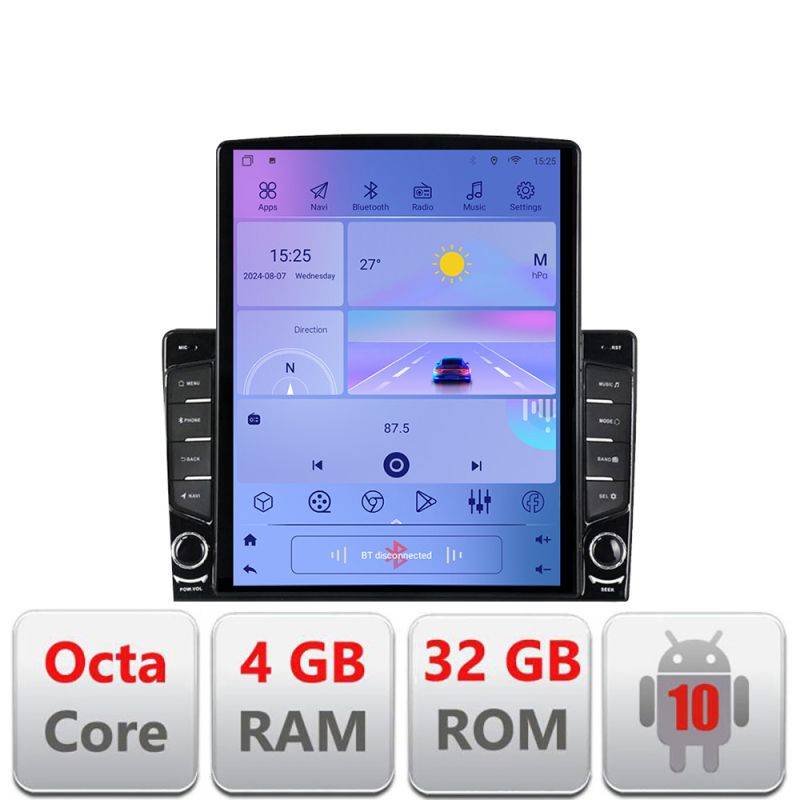 Android 10 ∙ Octa Core ∙ 4GB RAM+32GB ROM ∙ 4G și WiFi ∙ GPS ∙ intrare de cameră 360° ∙ intrare USB cameră DVR ∙ ecran uriaș vertical de 9.7”