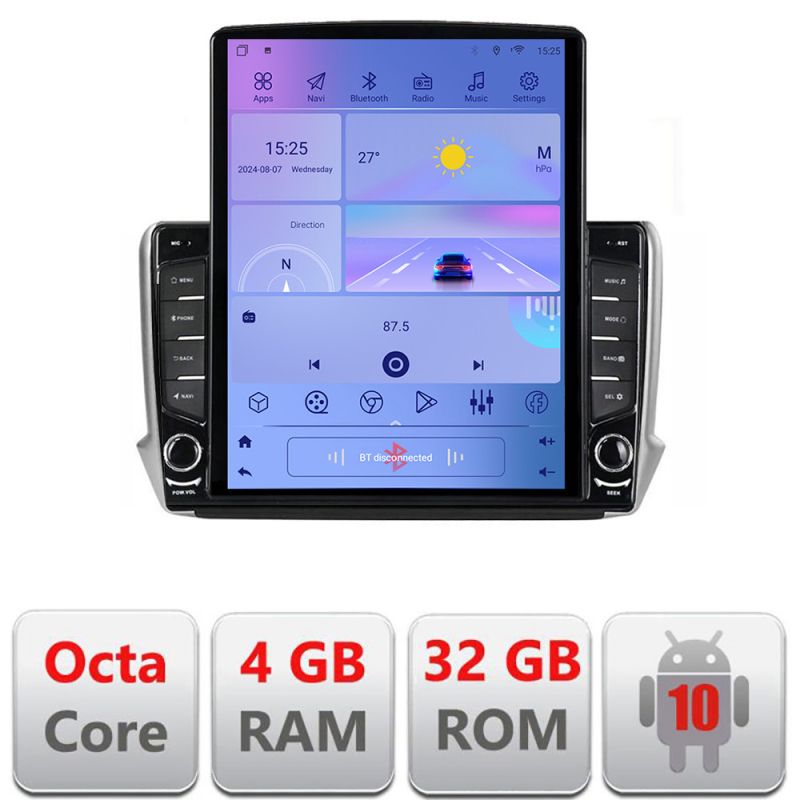 Navigatie Peugeot 208 2008 H-PSA ecran tip TESLA 9.7" cu Android Radio Bluetooth Internet GPS WIFI 4+32GB DSP 4G Octa